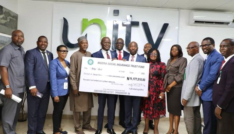 The family of a deceased staff of the Unity Bank, (name witheld) has received the sum of N11 million Naira from the Nigeria Social Insurance Trust Fund (NSITF ), as lump sum of death benefits.