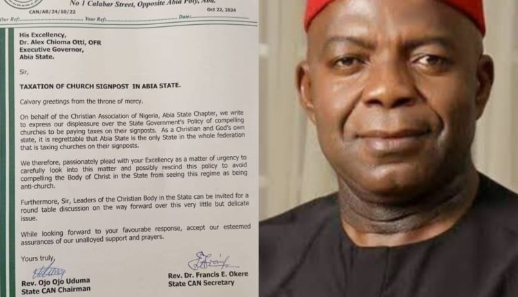 The Christian Association of Nigeria, CAN, has called for dialogue between it and the Alex Otti led government of Abia state over the imposition of taxes on churches in the state.